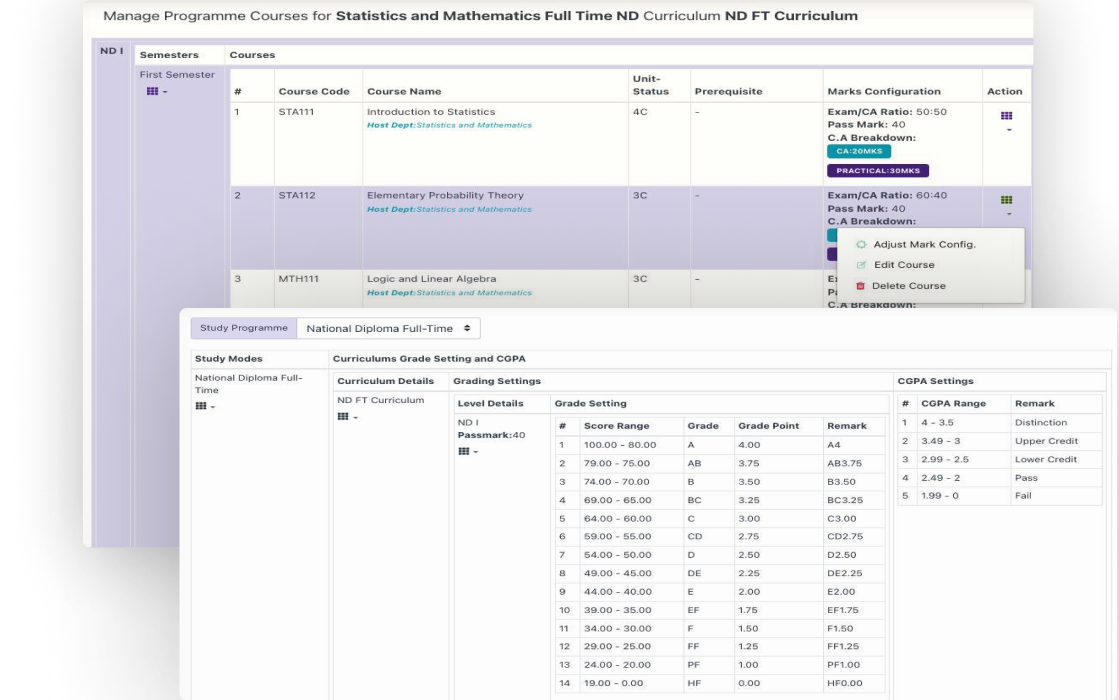 Internal processing of results based on curriculum and sessional grading parameters to generates Broadsheet, Summary Sheet and Students’ Transcript