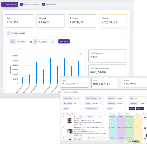 EduTAMS PRO is an end-to-end solution that connects key school operations at the point of admission all through payments, registration and result processing to the point of graduation, in such a seamless way that eases the task of school administration.